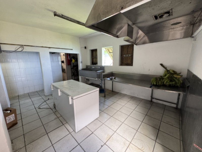 Extras: El restaurante consta de salón cocktail lunch, barra, 9 baños, kiosko con su terraza (mide 100' X 15'), 16 mesas, mas de 100 sillas, 37 estacionamientos e incluye todo el inventario como: "walk in freezer", "walk in refrigerator" para vegetales, "walk in cooler", cisterna de 5,000 mil galones de agua, planta industrial de 21 KW, amplia cocina con estufa industrial, plancha de cocina de 4 pies, lavadora de plato, extractores industriales, "sandwichera", 3 mesas stainless steel de 8 pies c/u (para la confección de alimentos), botelleros, nevera de 3 puertas, vitrinas de frituras y muchos equipos mas.