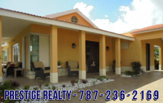 Hermosa propiedad, modelo Miramelinda de 4 hab., 3 baños, sala, comedor, cocina remodelada con topes en cuarzo, lavandería, family, área de oficina, terraza, marquesina doble con entrada en lozas italianas y amplio solar de 900 metros con hermosos jardines. Te ofrecemos las mejores alternativas para el financiamiento. No la dejes pasar!!! Para citas o mas información, llamar o textos a Carlos Gómez al 787-236-2169 o accesa a www.prestigerealtypr.com.