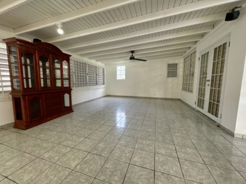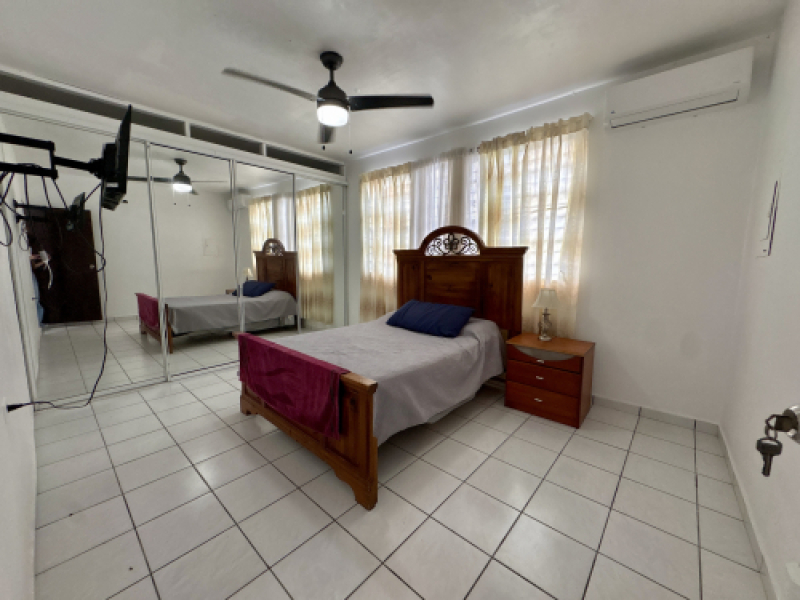 La propiedad cuenta con un amplio terreno de 942.4 metros cuadrados, lo que la convierte en una excelente oportunidad para expandir, desarrollar o crear un proyecto con alto potencial de ingreso. La residencia ofrece cuatro habitaciones amplias, dos baños completos, sala, comedor, cocina y sistema de alcantarillado. Las dimensiones de las habitaciones son generosas, destacándose el cuarto principal con 13.5 pies de ancho por 20 pies de largo, seguido por cuartos adicionales de 13 por 11 pies, 14 por 11 pies y 11 por 12 pies.