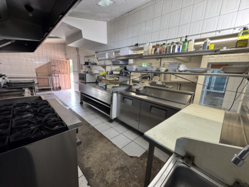 Extras: El restaurante consta de salón cocktail lunch, barra, 9 baños, kiosko con su terraza (mide 100' X 15'), 16 mesas, mas de 100 sillas, 37 estacionamientos e incluye todo el inventario como: "walk in freezer", "walk in refrigerator" para vegetales, "walk in cooler", cisterna de 5,000 mil galones de agua, planta industrial de 21 KW, amplia cocina con estufa industrial, plancha de cocina de 4 pies, lavadora de plato, extractores industriales, "sandwichera", 3 mesas stainless steel de 8 pies c/u (para la confección de alimentos), botelleros, nevera de 3 puertas, vitrinas de frituras y muchos equipos mas.
